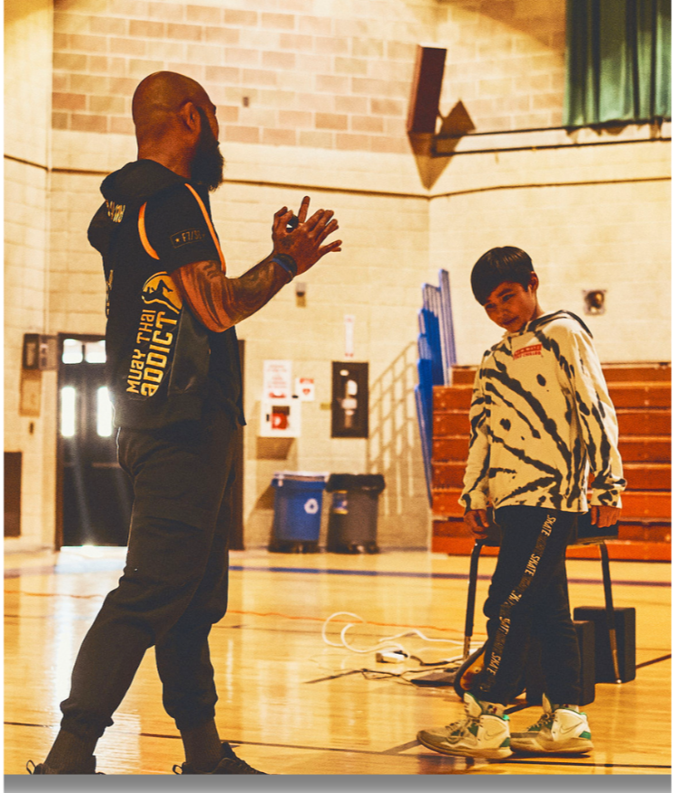 My workshops combine Muay Thai movement with mindfulness practices—helping young people sharpen focus, manage stress, and strengthen resilience for challenges in school, sports, and life.